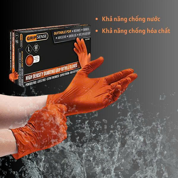 Sản phẩm sử dụng hợp chất nitrile cao cấp với độ dày 6 mils kết hợp họa tiết vảy cá giúp tăng khả năng chống rách và chống đâm thủng so với găng tay dùng một lần thông thường.